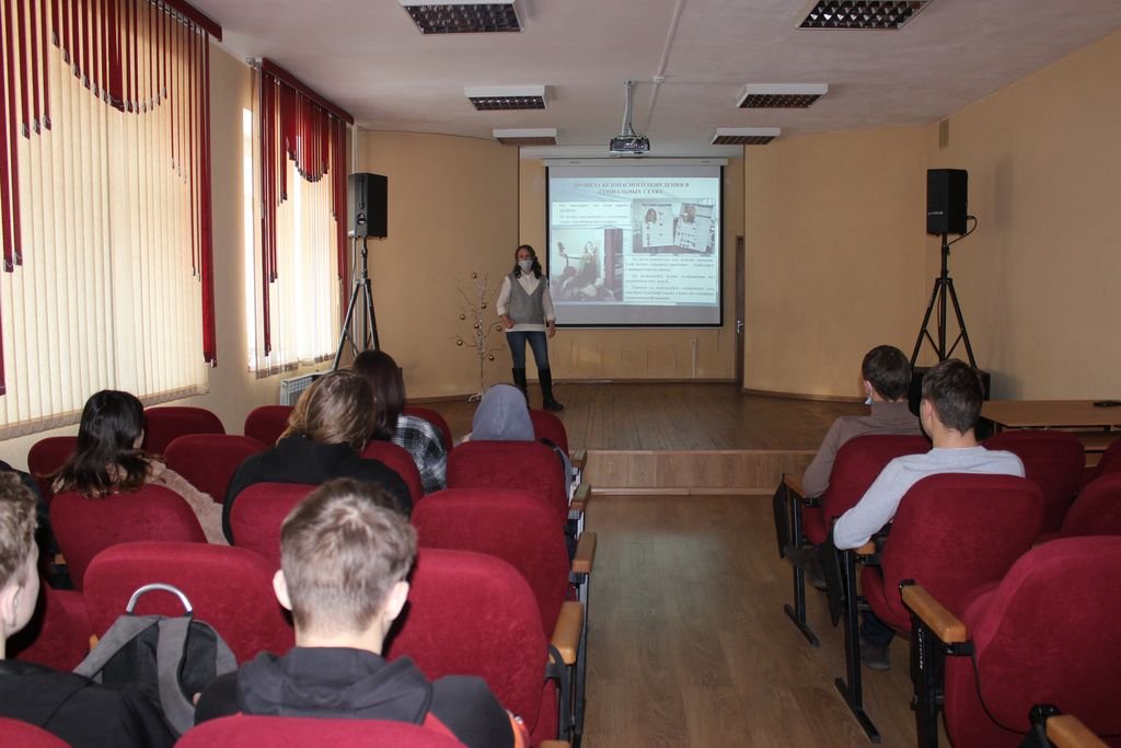 26 января в филиале КузГТУ в г. Белово для обучающихся второго курса по программам среднего профессионального образования состоялось познавательное мероприятие по безопасности жизнедеятельности в сети интернет «Киберпатруль», подготовленное социальным педагогом Головановой Е.В.