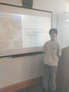 В преддверии завершения юбилейного 80-го года Великой Победы и года, посвященного защитнику Отечества, 8 декабря студенты группы ИС-255 под руководством преподавателя Аксененко Серафимы Юрьевны провели тематический открытый урок. Тема занятия – «Города Герои СССР и места воинской славы» – позволила ребятам глубоко погрузиться в историю нашей Родины. Каждый студент представил свой героический город, вспоминая о мужестве тех, кто пал, защищая свои дома; о разрушениях, пережитых городами и о их героическом восстановлении. В ходе урока студенты не только поделились фактами, но и передали атмосферу тех страшных лет и гордость за стойкость нашего народа. Их слова о том, что "никто не забыт и ничто не забыто", стали ярким завершением данного мероприятия.
