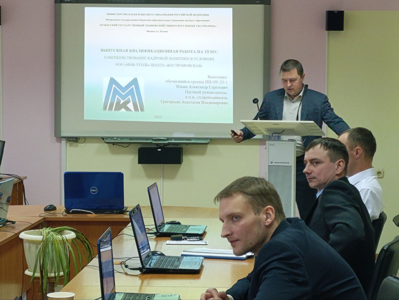 19 декабря 2025 года в филиале КузГТУ в г. Белово прошла защита выпускных квалификационных работ по программе образовательной профессиональной переподготовки «Менеджмент. Организация и управление отраслевыми предприятиями». Образовательную программу осваивали работники компании ООО «ММК-Уголь» — руководители и специалисты Центральной обогатительной фабрики, Центра сервиса и логистики, шахт «Костромовская», «Чертинская Коксовая», «им. С.Д. Тихова». В процессе обучения слушатели изучали основы управленческой деятельности, логистику, методы принятия управленческих решений, основы управления конфликтами и человеческими ресурсами и другие дисциплины для освоения требуемых компетенций. Во время выступления слушателям задавались вопросы по практическому внедрению предложенных мероприятий по совершенствованию процесса управления персоналом в на своих предприятиях.